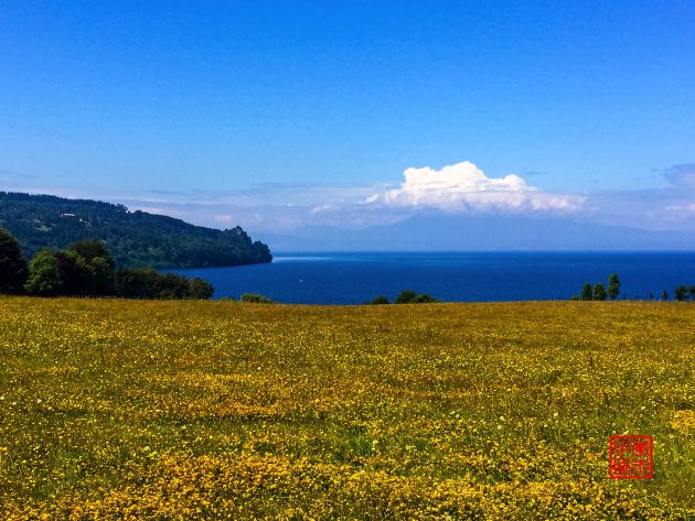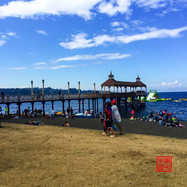 中午12点终于到了就近的Llanquihue小镇,这时候已经骑行了9公里了。这个镇就是以这个湖命名的,哦也或许是反过来。我们吃了午饭,Camila买了鞋子,一点半出发继续艰难前行。刚出了镇中心以后,这片湖景很美,也没什么人。