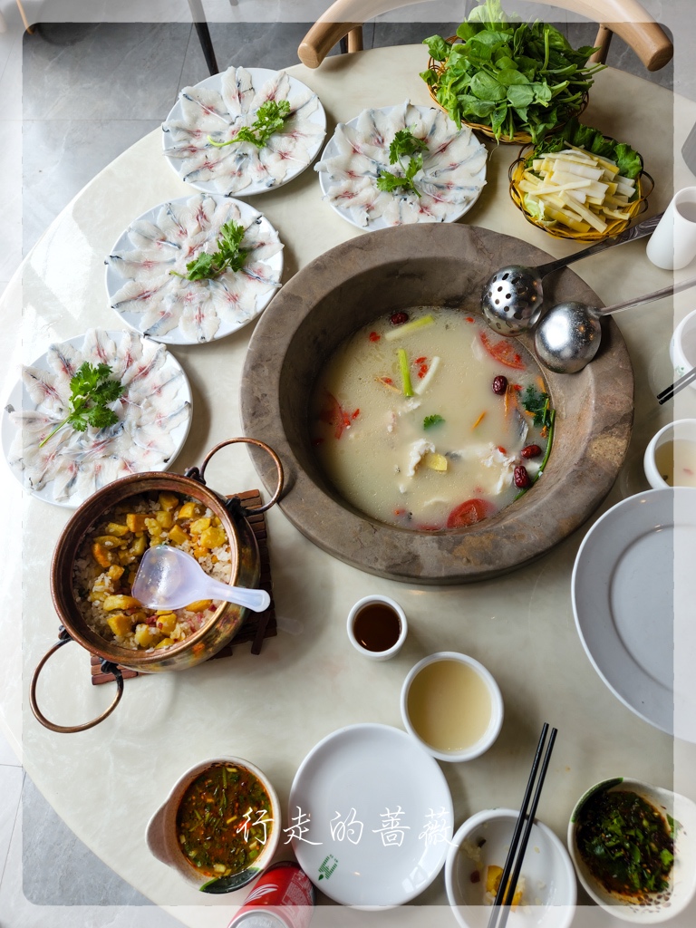 我们还是选了昨天同一家餐馆(仙湖湾石锅鱼铜锅鱼)吃鱼,因为我觉得大概都差不多吧,我对昨天的那家印象不错。今天我们想吃点好的,之前在网上图片看到有那种鱼片,问了老板原来是当地特有的红脸青鱼,也是活鱼论斤称的,细细去选了一条。这个鱼刺吃起来没有昨天那么麻烦了,虽然也是多刺,但是因为是鱼片所以刺都断了比较方便吃。我们来得很早,只有我们一桌,看到昨天服务的同一个姑娘,昨天她一直在和我们隔壁桌她认识的人聊天。今天她过来和我们聊,原来是老板的女儿,基本每一桌都是她在招呼的,她说记得每一桌人。 我们还点了网上推荐的醉虾,真是好吃啊,那个酱汁非常的爽口,我很喜欢。这顿饭吃了400块,没听过的奇怪名字的鱼果然比较贵。 依旧是阴霾的抚仙湖,有点遗憾没看到它最美的一面。本来计划了一些水上活动的,结果都没成行,也~好~下次再来吧。 2022/9/9