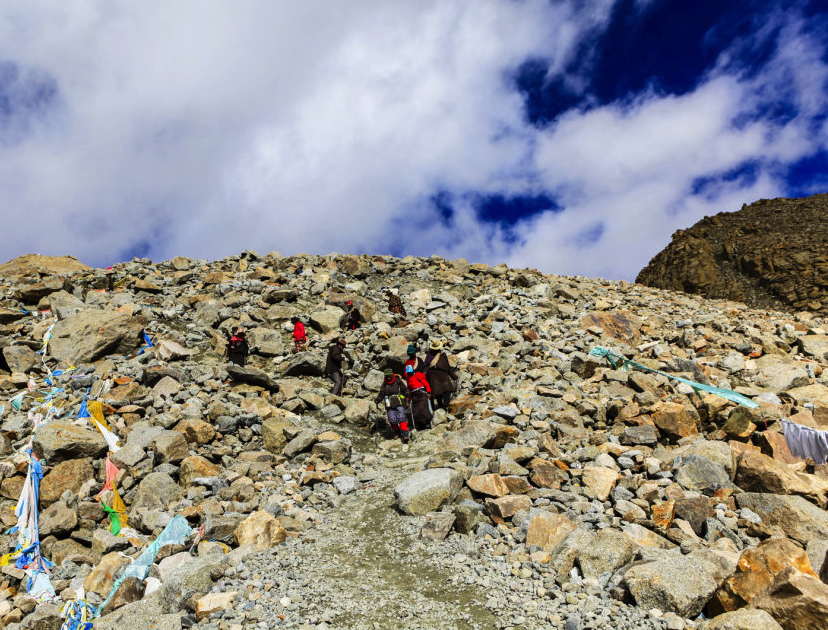 今天共需徒步32km,早上天还没亮就起来出发。听说摸黑行进只管看着脚下,看不到道路和周围环境的艰险,心理上也会更轻松些。但遗憾的是这样就看不到冈仁波齐的日照金顶了。以前爬山凌晨冲顶过很多次,每次下来的时候都有点后怕,觉得难以想象怎么爬上来的呀。