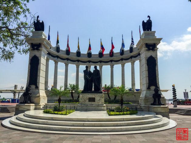 因为之前的心里阴影,不是很敢拿出手机拍照。河边有Malecon 2000河滨大道,感觉还挺好的,就是到处灰蒙蒙的,不知道是不是空气污染的缘故。这个位于Malecon中间的雕塑Rotonda,是为了纪念西蒙玻利瓦尔Simon Bolivar和荷西圣马丁Jose de San Martin在这里瓜亚基尔的那次重要会面,这二位在南美解放战争中可是赫赫有名。