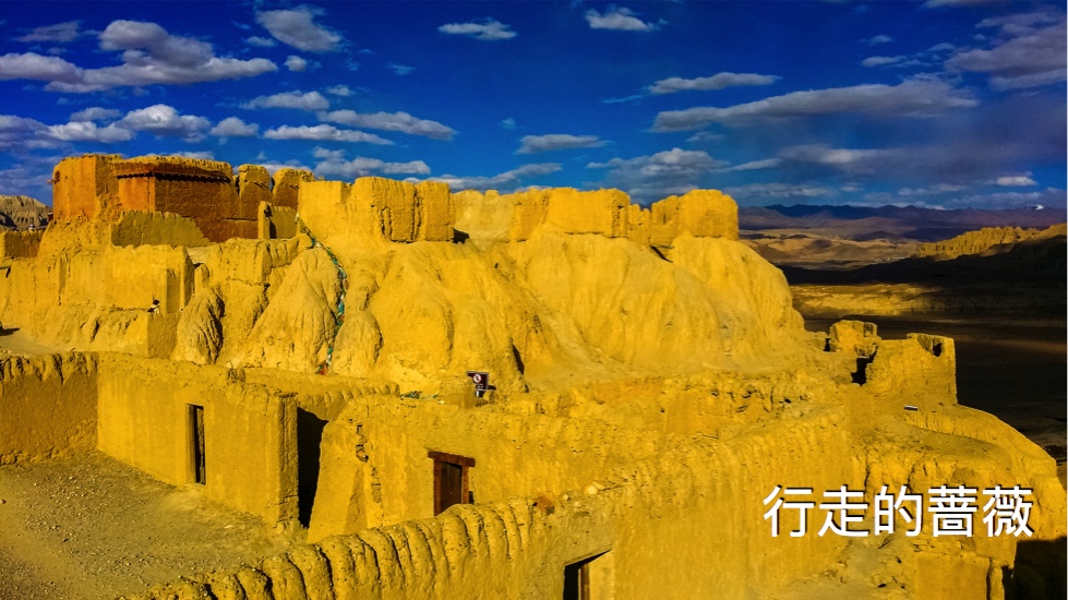 古格遗址建筑在一座黄土坡上,密密麻麻的,很多上面都有标注数字,大概是便于考古研究。住宿有严格的等级制度:山坡上是达官贵族的住宿,山下是奴隶居住,有的洞窟则是僧侣的修行地。有这样陡峭的山壁作为屏障,要爬上山顶比登天还难。那么古格人自己又是如何上山的呢?原来聪明的古格人在山体内修筑了许多暗道,暗道中某些类似窗户的洞,既为了采光又可以用来防御。这些暗道迂回曲折,拾阶而上可直达山顶王宫。