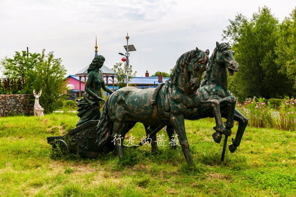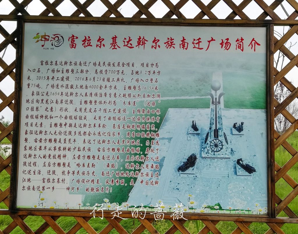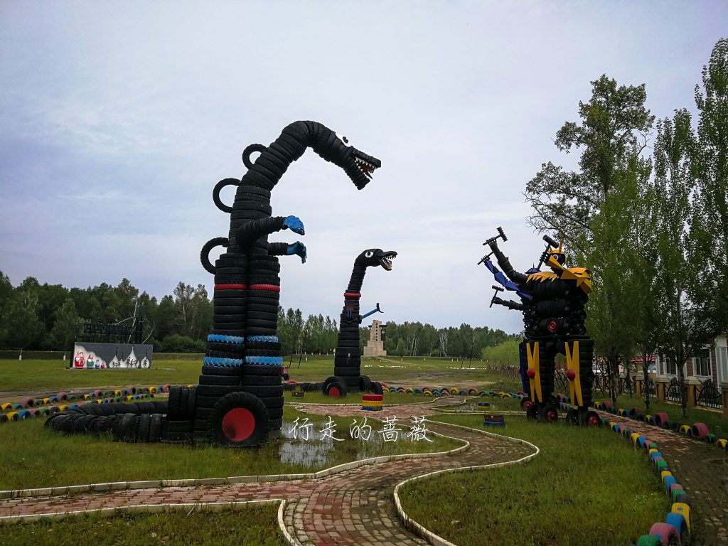 这个南迁广场是瑷珲乡野公园的一部分,沿着国道331建了一系列以满达俄文化为主题的休闲场所。