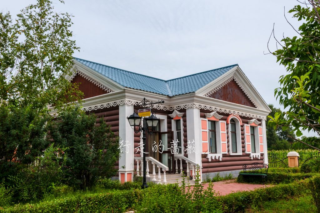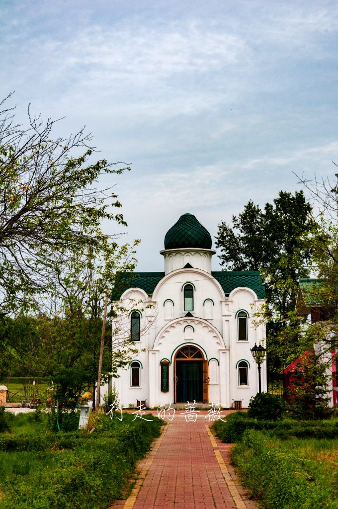 经过一个外四道沟俄罗斯特色旅游村,村里的大妈说现在也没有什么本地人或者俄罗斯人,都是外地来的。这里有个度假村感觉修的不错,但是不单独对外开放餐厅,不然就在这儿吃了。这里很适合市区里的人周末来休闲度假,但是给我的感觉,很像是政府招待人gong款吃喝的地方。附近还有一个很大的森林公园,一直走好像能走到江边,实在有点远我们就半路返回了。
