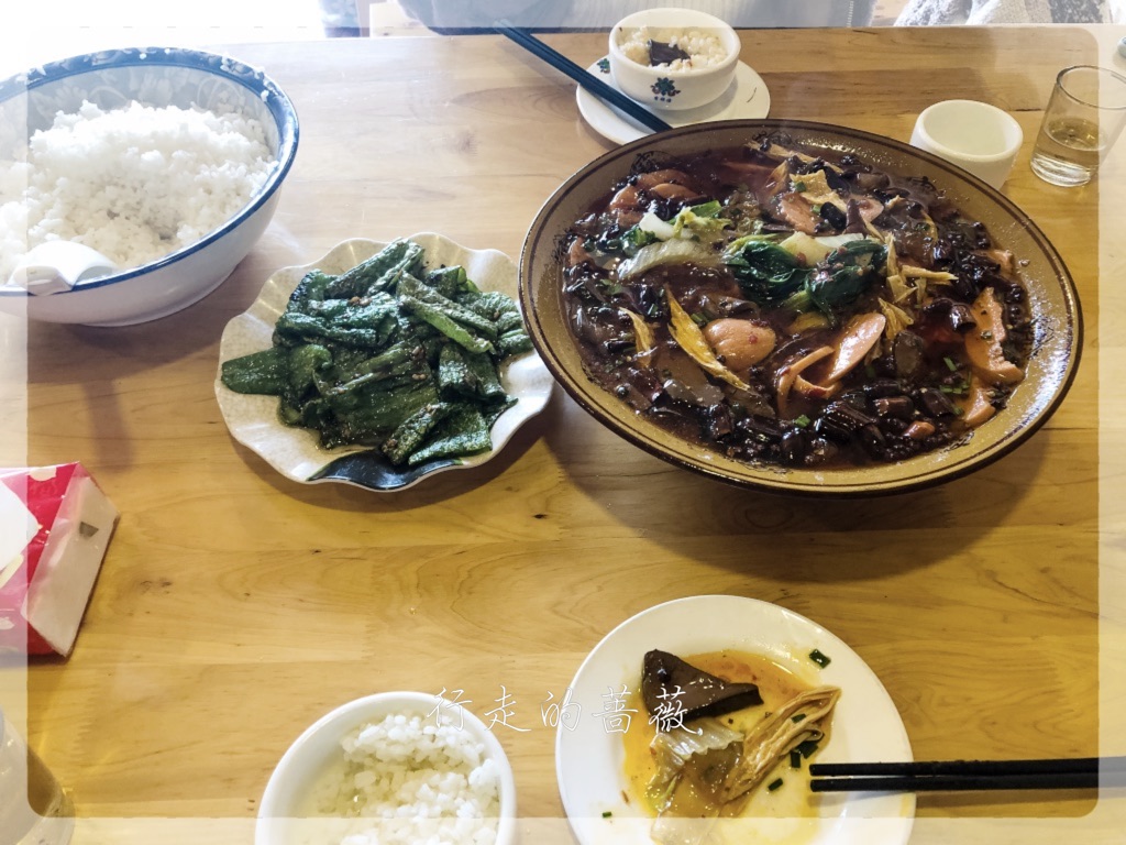 到酒店安顿下来就出门觅食,网上看到的馆子都关门了,他们说是因为淡季来了,之前几天还开的。好容易找了一家川菜馆,饭店的员工在打麻将,看了看说米饭没多少了,我们想没有就没有吧,点了个毛血旺。最后上来的米饭有那么大一碗,他们是高估了我们的食量还是怎么,这么一大碗还不够我俩吃的吗哈哈哈。