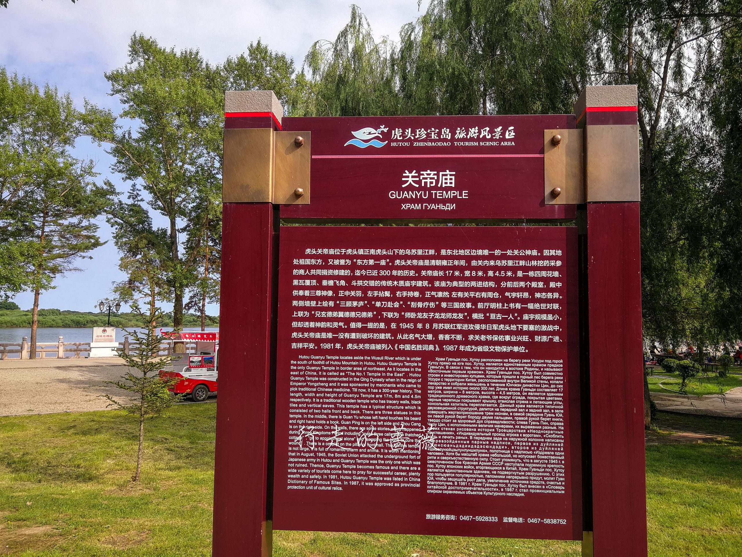 沿着江边走,能看到一座关帝庙。它是黑龙江省较早的一处庙宇建筑,始建于清雍正年间(1723——1735),至今已有近300年的历史,是鸡西地区唯一一座保存较为完整的历史建筑遗址。被誉为“东方第一庙”。感觉香火很一般,这边关帝庙确实不怎么常见。
