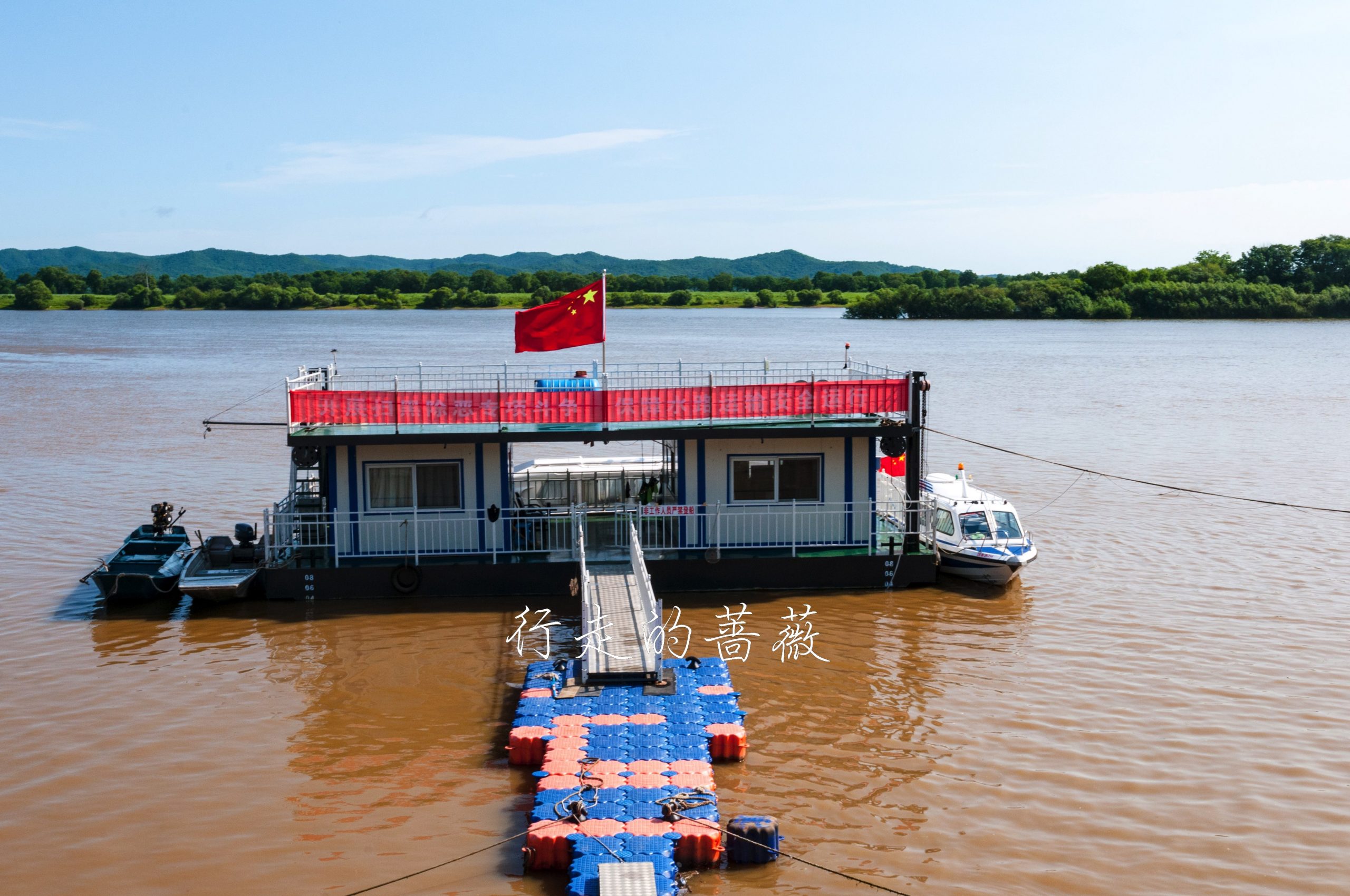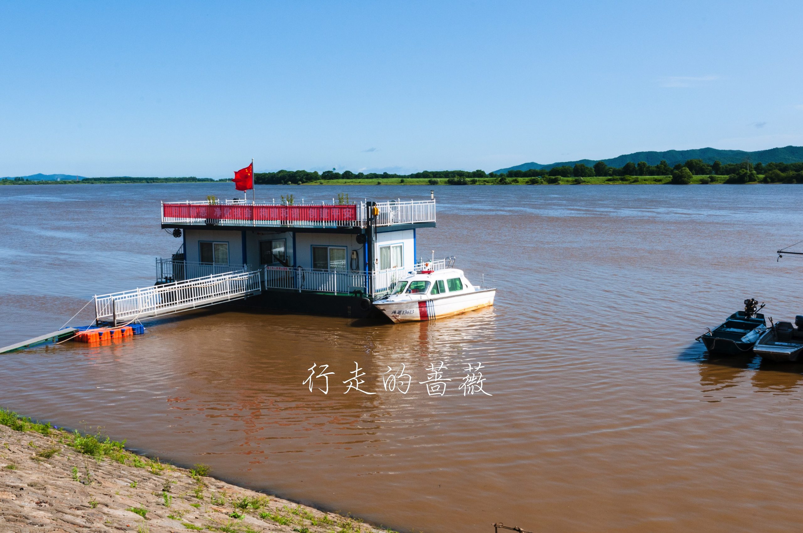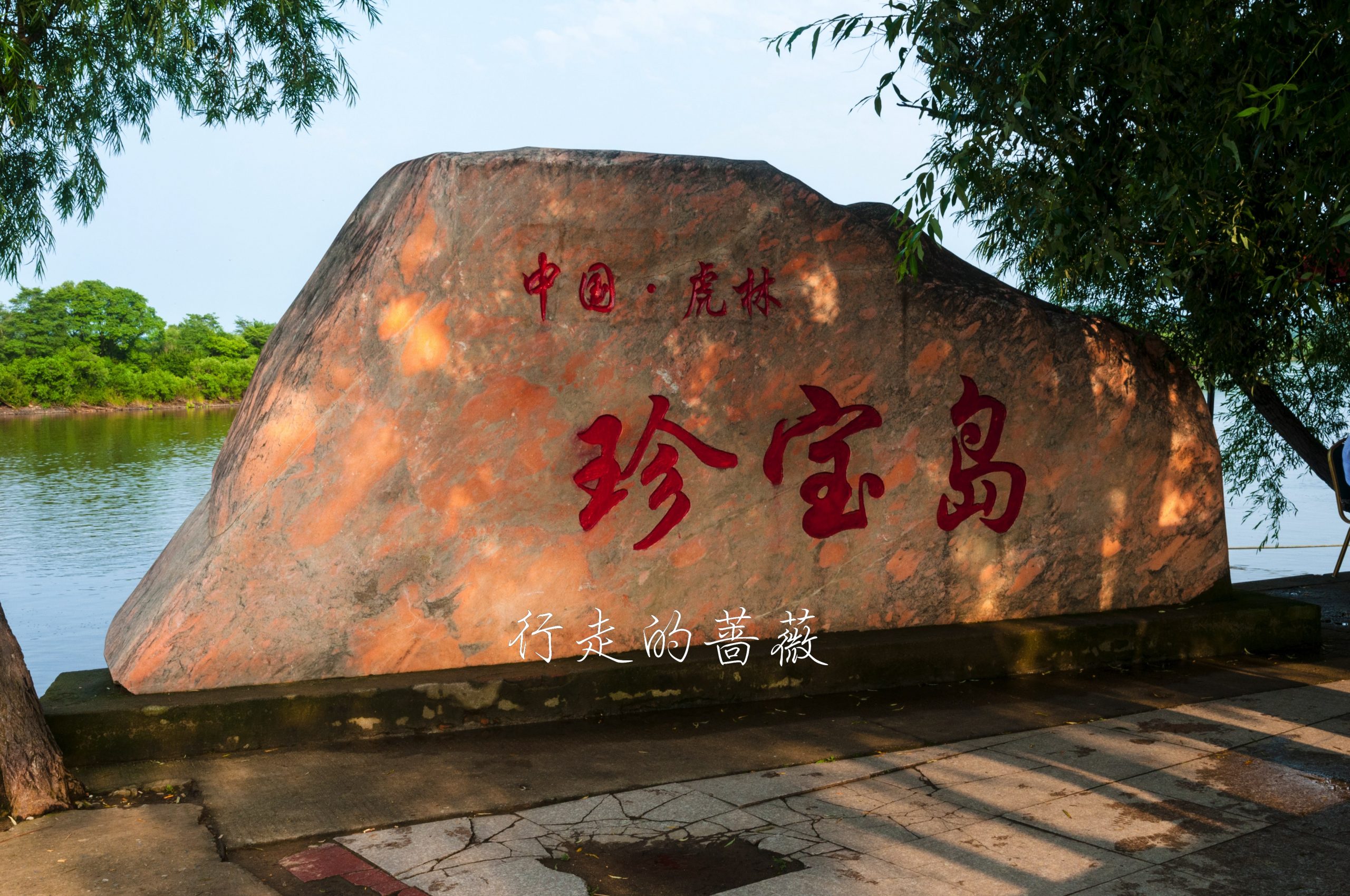 珍宝岛位于乌苏里江上,长约二公里,因形似元宝故名为珍宝岛。此岛位于主航道中心左侧,自古以来就是中国领土。现在,珍宝岛登岛好像需要提前和旅行社预约才可以,或者可以花钱坐快艇绕岛一周。我们也就是来隔着河岸看一眼这个珍宝岛反击战的主角。
