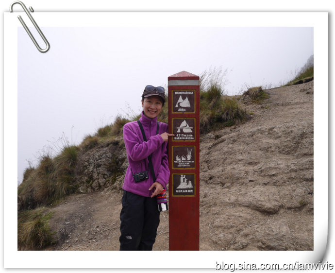 终于,爬到了4200米的死女人山口,成功啦!海拔高明显感觉到冷了,山上云雾缭绕的。