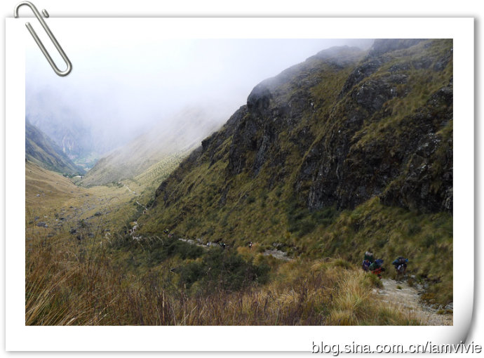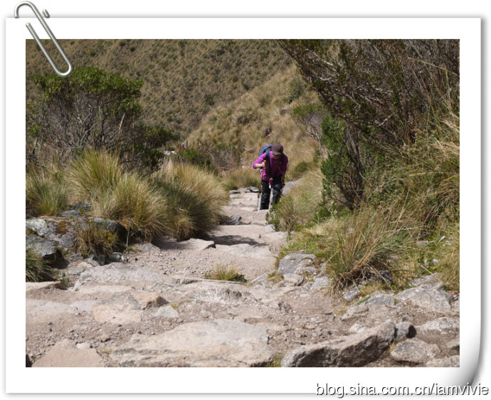 其实我对这段路印象不是很深,虽然辛苦些,但是很快就爬到了,温度也不高,所以没受什么折磨。一直埋头苦爬,沿途风景什么的都是浮云。。。也许是对这段路做了足够的心理准备吧,反而不觉得什么。在去秘鲁之前,我在健身房运动了两个月,教练让我背着15磅的背包保持每分钟步速65在登山机上练,当时觉得真要死了,拼命和教练解释,我有雇挑夫,不用自己背那么多东西的。后来发现,确实是有用的,不过不是在印加古道上,是之后去爬火山深刻体会到的。我走完印加古道觉得其实没想象中的那么难,所以,不要犹豫!印加古道还是很值得去体验的的,就算觉得辛苦些,慢慢走的话,也是都能走下来的,时间很充裕,导游也很有耐心。