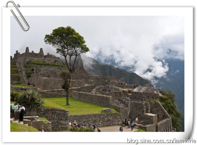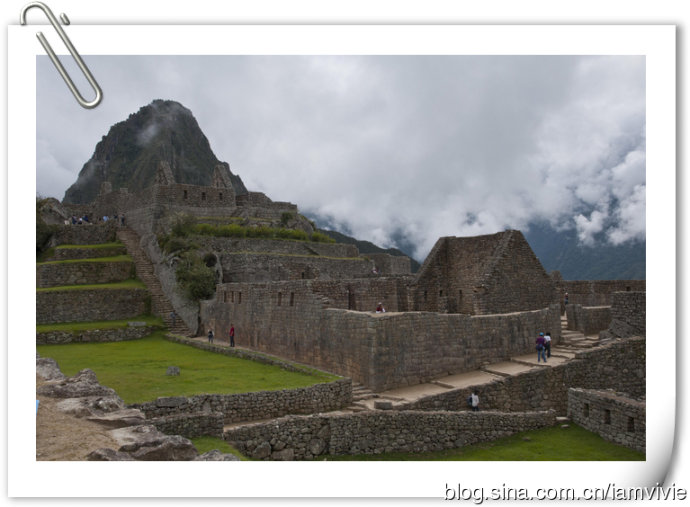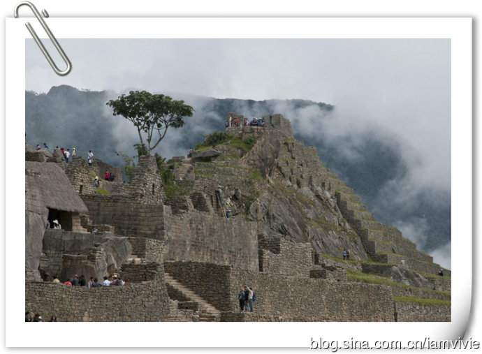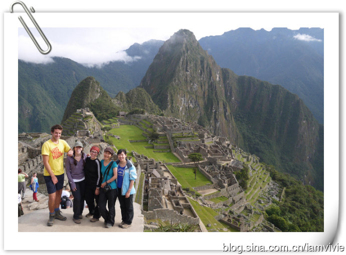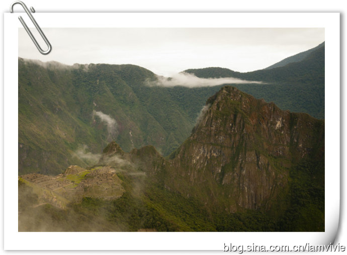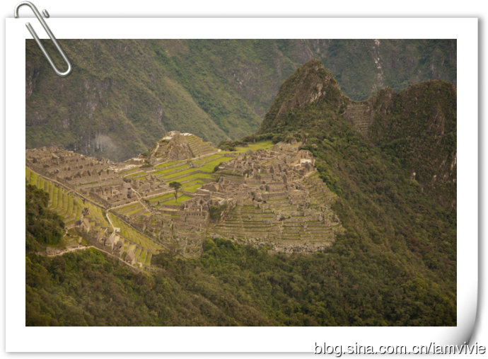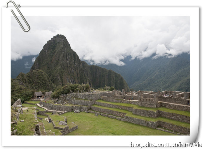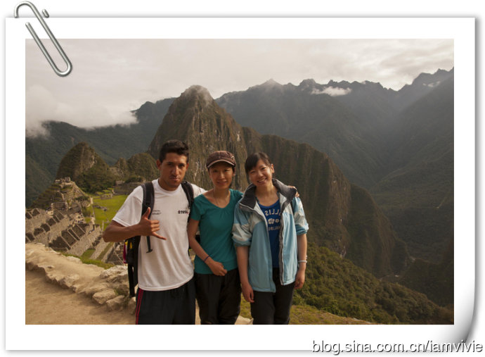 徒步了四天,大家都很疲倦,到达终点变得一副兴趣缺失的样子。最后自由活动时间,除了我以外,竟然没有一个人想爬到顶上俯视一下马丘比丘。我是还有余力,而且觉得都到这里了不去多可惜,就一个人去爬了。爬到顶上守卫人的小屋以后,上面继续徒步还有个桥,入口处还要登记,据说要十五到二十分钟的样子,不想让大家在下面等我太久,我就没去。这就是大多数明信片的取景角度,真是一样一样一样的。回来拿这一张当电脑桌面,同事犹豫了好几天才问我,这是你从网上下载的吧。。。矮油!