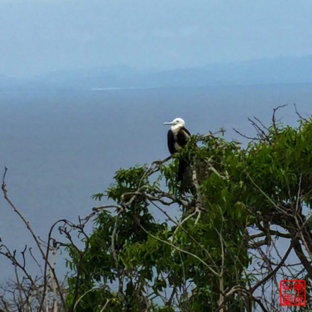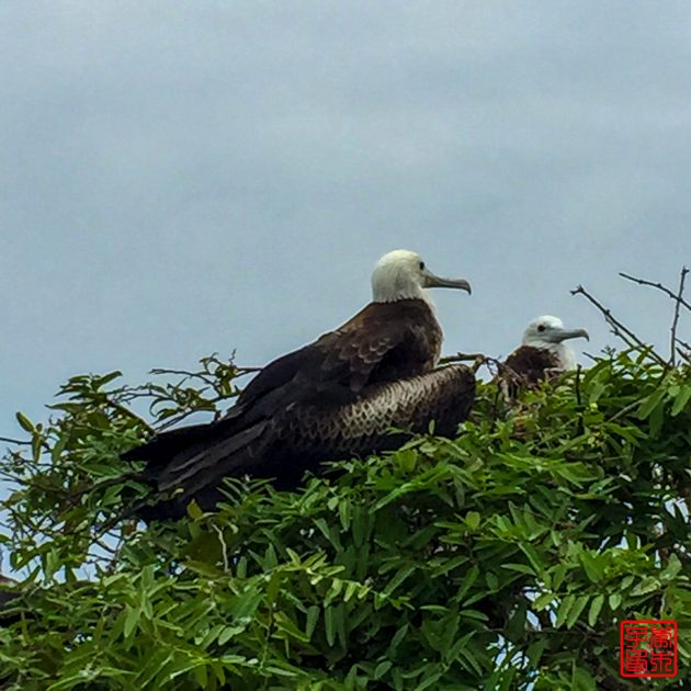 还有那个军舰鸟frigatebird,求偶期的时候会鼓红泡泡,现在不是季节所以没有。这个鸟非常多,几乎把树都占满了,导致了另一种鸟类差点灭绝。
