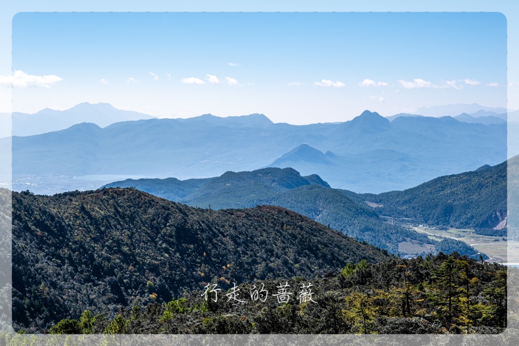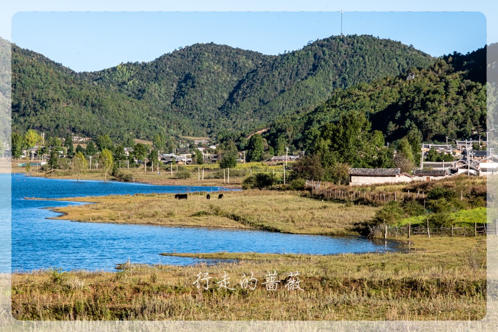 杨导沿着山路开车,丽江市区已经尽在眼底了。我们先是来到文海村,取了中午要吃饭的食材。这里海拔3180m,有一个文海(湖),据说春夏时候都是花海。这里能拍到玉龙雪山的倒影,这个季节草都黄了。