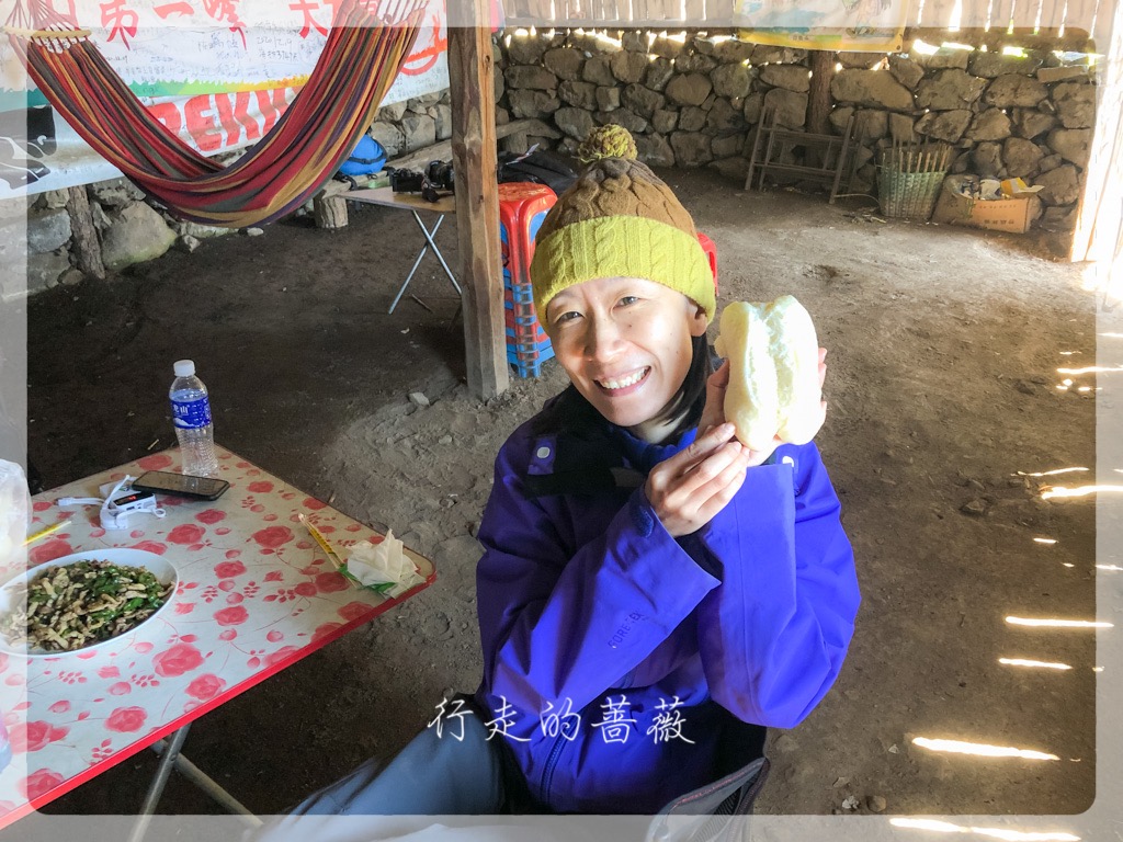 终于结束了辛苦的爬山,来到了杨导自己修建的大本营,中午将在这里吃午饭。外面阳光很好,但是风很大,拿出椅子摆拍了几张就回屋子等着吃饭了。