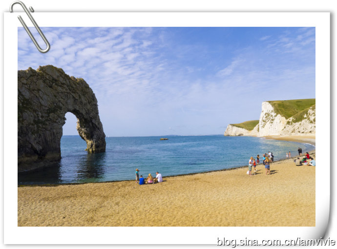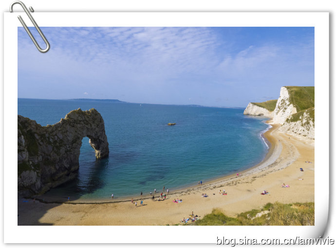 真是放多少张照片都不足以形容侏罗纪海岸线的美:)Durdle Door就是下图的石灰石行程的那一个洞,这名字念起来超绕口的。。。. The name Durdle is derived from the Old English ‘thirl’ meaning bore or drill.