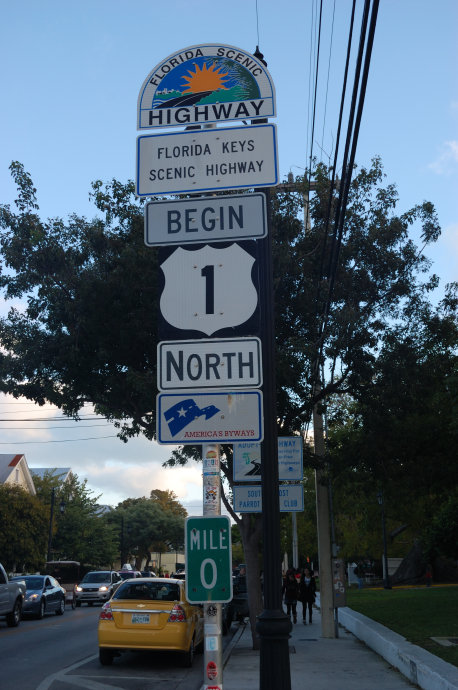 先介绍一下Key West,迈阿密往南,有一连串的小岛,叫做佛罗里达群岛,每一个岛都叫key什么的,大概是像钥匙串?!Key West是佛罗里达群岛的最南端的一个岛,号称是美国本土最南端,但是事实上不尽然,地图上看还是有比它更南的,但是人家这么宣称的,咱也只好这么附和着。