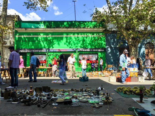 蒙得维的亚每个周日早上在Tristán Narvaja街上都有跳蚤市场,和布市的San Telmo周日市场类似。昨天在旅社认识了一个墨西哥小姐姐Carmen,今天和她结伴一起来逛市场。又是逛断脚的节奏,差点没钱买晚饭,攒了一堆破烂回来。