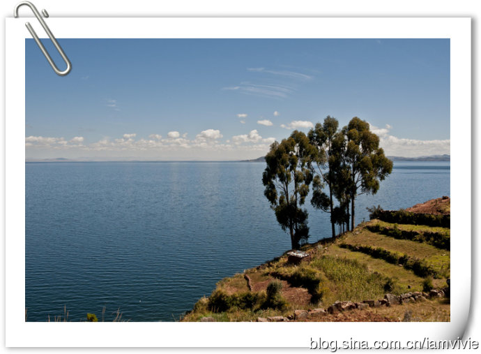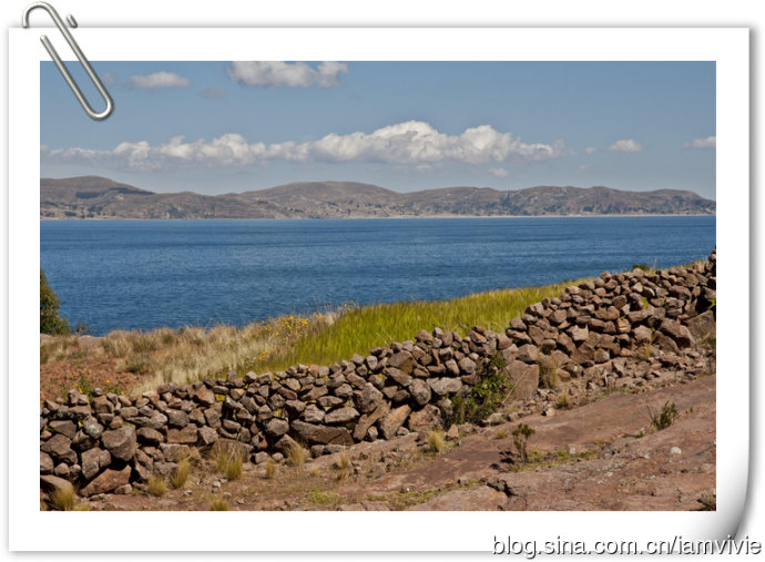 提提喀喀湖海拔是蛮高的3812米,是南美洲最大的淡水湖泊,位于秘鲁和玻利维亚交界的安第斯山脉,也是世界上海拔最高且大船可通航的高山湖泊。第一站是Isla Taquile。导游带我们走的是比较少游客的那一端,除了我们团也没看到别人,不过我看普通团的安排都是先去浮岛下午才来这个岛的。又是一段徒步之后,Edgar开始作介绍了,我虽然觉得这个湖没特别惊艳,但是颜色蓝的还蛮漂亮的,就噼里啪啦不停地在拍照。后来摘了墨镜发现,其实蓝的很普通,只是我的墨镜是偏光镜,所以看上去特别蓝。。。实际没那么美啦,细细说:我就奇怪,有那么好看嘛你在那里拼命拍哎。