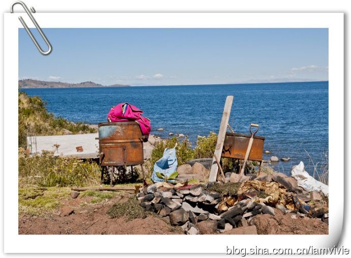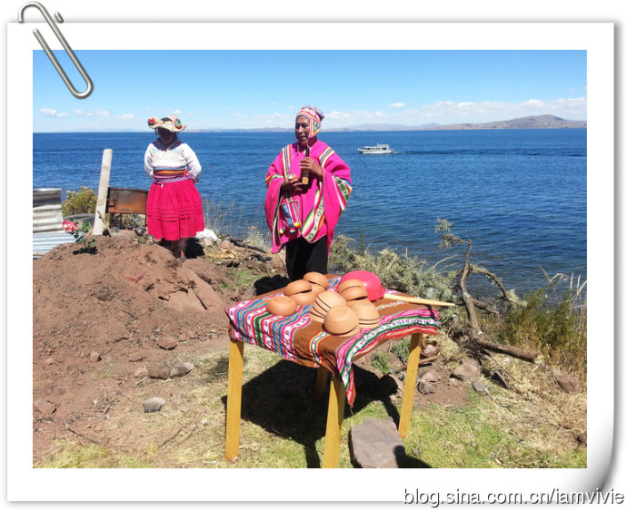 徒步完就坐下听着岛上人民介绍手工艺制品的创作过程,有些还蛮漂亮的就是贵啊,大家比较感兴趣还是1 sol一条的手链,我买了两条带手上,我还挺喜欢的。没有原路返回,从岛的另一侧上船,驶向某半岛吃午饭,名字忘记了。。。这顿午饭吃的还真不容易,烤的肉还有蔬菜水果都埋在地下,先要进行什么仪式,也就是祭天祭地祭神灵那一套,然后才开土把吃的挖出来。还说平时都看不到哦,只有今天特意准备的,我这种饿死鬼只期盼着快点结束仪式赶紧吃饭。
