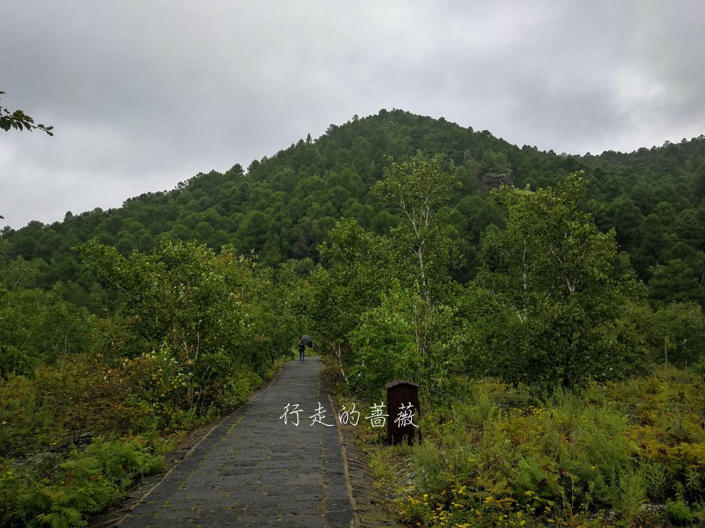 老黑山是五大连池景区最热门的一个,是14座火山中最高的一座。山势高耸,山林多由黑色浮石组成,因称“老黑山”。在门口坐景区车到达火山脚下,森林里有徒步的道路上山,可以走一个环线回到原地。我们爬着爬着,又开始下雨了。。。还好不算大不是昨天那种暴雨。走到山顶大约半小时,能看到漏斗状的火山口。