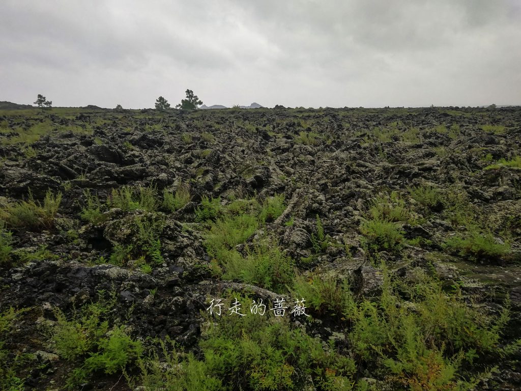 下山后经过大面积熔岩的石海,像一片汪洋一样波澜壮阔。火山爆发时岩浆喷涌漫流,冷凝后形成的,举世罕见的火山熔岩奇观。确实是比较奇特,我去过那么多火山还是头一回看到这样的地貌。