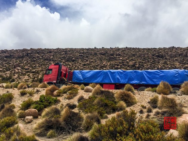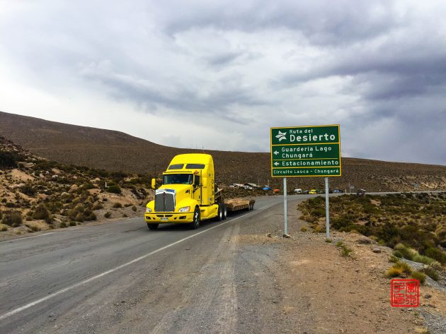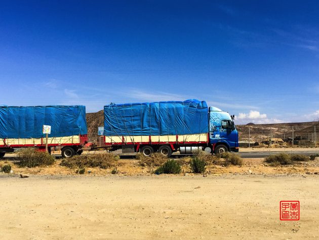 路上有很多玻利维亚的卡车经过,玻利维亚在太平洋战争中丧失了出海口,成为完全的内陆国家,现在要通过智利才能出海,很悲催。