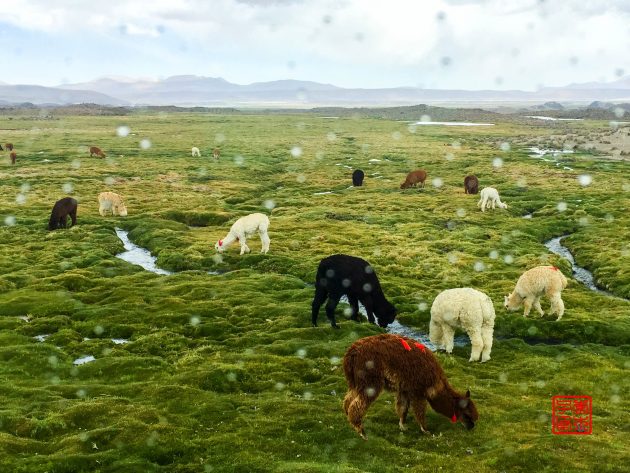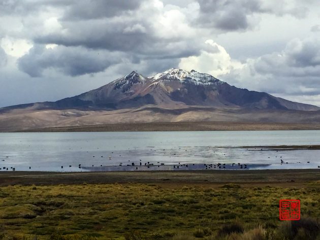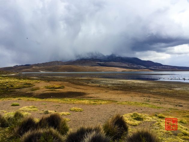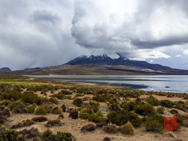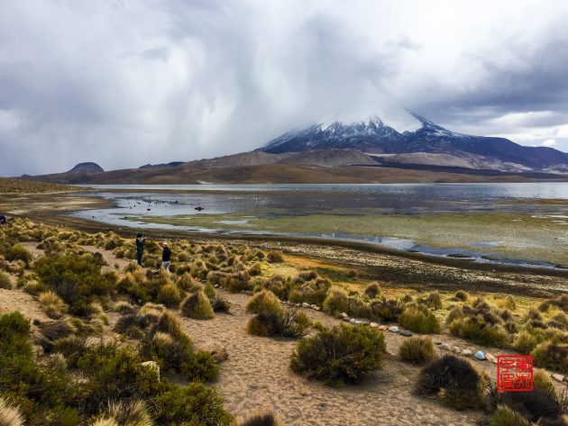Lake Chungará是世界海拔最高的湖之一,4517m,是这个国家公园的主要景点,周围环绕着火山,毗邻玻利维亚边境。天气不好加上对玻利维亚典型风景的审美疲劳,觉得有点鸡肋,颇有点到此一游的打卡。云彩越来越厚,连山顶都快看不见了。