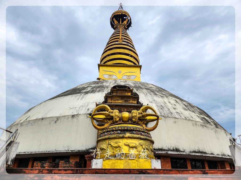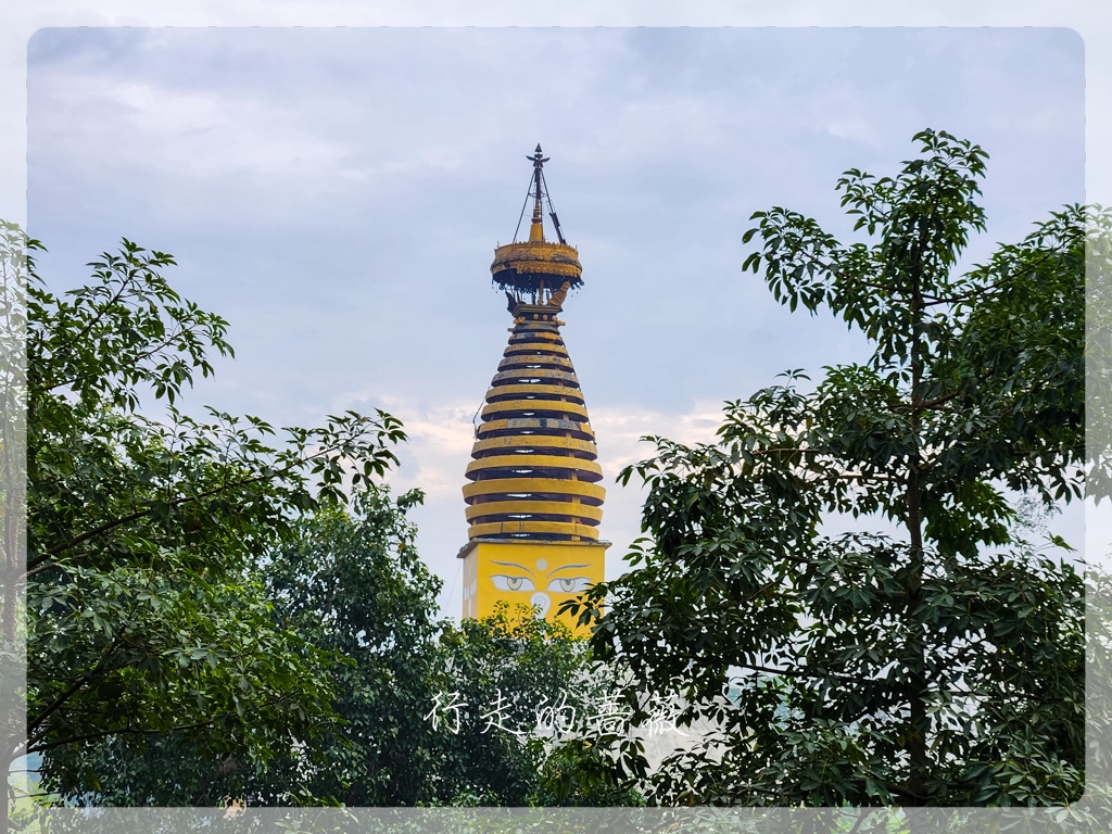 旁边有一个藏传佛教舍利塔↓,典型的尼泊尔藏传佛教的带眼睛的佛塔。
