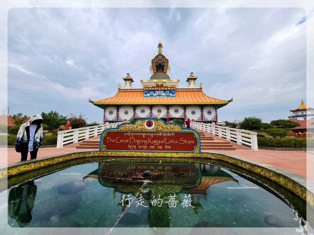 接下来是刚才从远处就看到的新加坡寺庙,上面有些藏传佛教标志,像是现代风格的中国宝塔。
