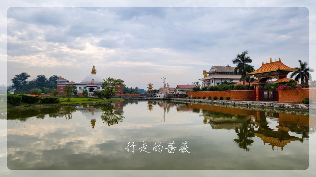 在蓝毗尼Lumbini的这些天都是多云天气,早上起来远处的农田雾气满满,因为这里是热带气候,所以对我来说有种不知道是何季节的错位感。今天白天的行程是参观蓝毗尼各国的佛教寺院。