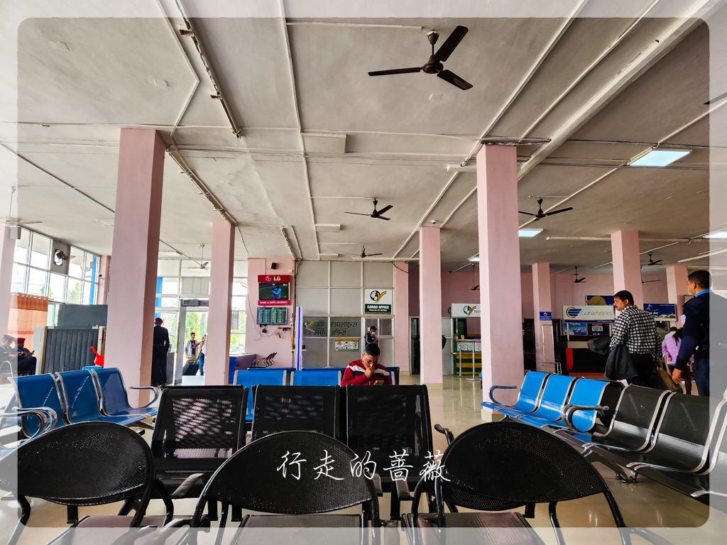 蓝毗尼最近的机场乔达摩佛祖机场Gautam Buddha International Airport,位置在派勒瓦Bhairahawa,距离蓝毗尼大约18公里,是尼泊尔第二座国际机场,由中国承建。据说是2022年5月正式开始启用,可能国际机场的航站楼和国内是分开的,国内这部分看上去已经很老旧了,应该不是新建的。