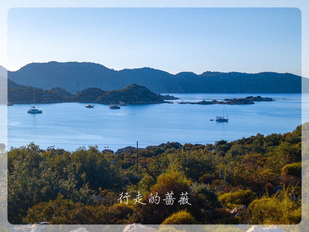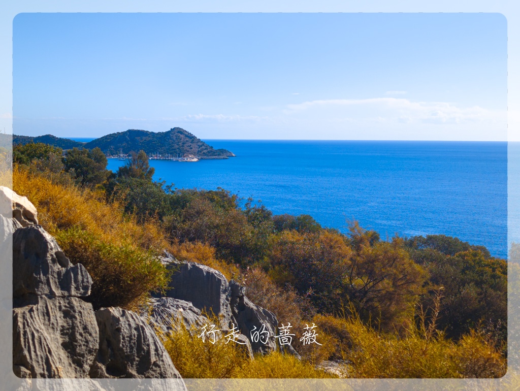 遗址就还是那些,利西亚石棺、城墙、剧院,但不得不说,这个位置可以远眺整个Kekova海域、Üçağız村、沉没古城遗迹,非常壮观。