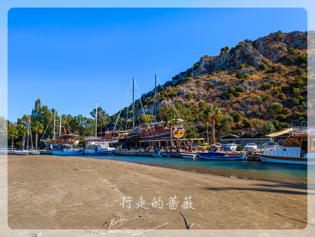 今天的终点是Cayagzi海滩,没想到这里倒是像个公园,有很多的船停在这里,还有那些树,像是棕榈树还是椰子树,我以为是热带才有。。。瞬间感觉不知道自己在哪里,入口处周边也有一些设施,有依旧开门的咖啡厅。我们看到了德国大哥,就也坐下来喝东西休息。离约定时间还早,用whatsapp联系了司机,司机说马上过来接我们去参观Myra迈拉遗址和圣尼古拉斯教堂。