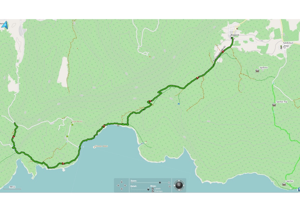 徒步第八天,文档数据:Karabelen – 》Boğazcık,12km,+450 m / -300m。实际手表数据:10.97km,+449m/-353m,3h21m。