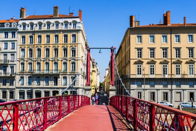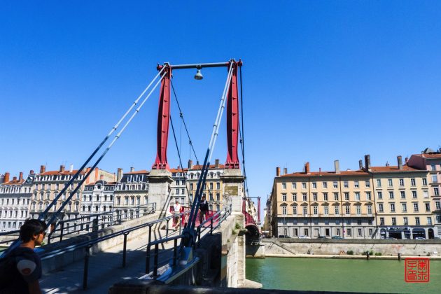 从老城逛着出来,接着往市中心的Place Bellecour走去,索恩河真是好美好美,河上有好几个桥,这个红色的Saint-Georges圣乔治桥最引人注目。