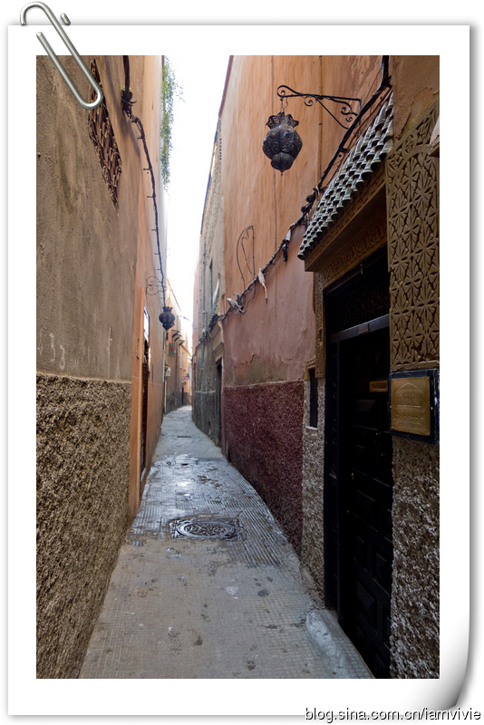 火车准点到达马拉喀什,背上大包出站后,发现火车站还不错,比卡萨布兰卡的好多了,出乎意料外的崭新干净!打车去老城投宿,因为我和Lin住宿位置不一样,司机又要单独算我们各自的钱,还价又还了半天。摩洛哥这个地方打出租是这样的,就算有人在车上,还是可以继续收乘客拼车,然后自己付自己的路程的钱,这很不公平唉,别处打车都是包车待遇,这里可就没福气了。出租车沿途大概是经过了新城,看上去马拉喀什还行啊,受到卡萨破落程度的惊吓,我们现在看哪里都觉好了,哈哈哈。老城大部分是不允许进车的,到了美地那,司机把我放在最近的路口就继续送Lin了。下车后一路不停有人骚扰要带路,我各种装听不懂,硬是凭着直觉走到了旅社说的标志性建筑物Hote CTM,旅社的指示是,看到了这个酒店,再顺着边上的小巷走一段就到了,小巷我是找对了,但是怎么也没看到旅馆的名字,来来回回绕了好久,只好问了旁边卖东西的人,立刻就有人上来带路了。那人指着一条偏僻的小巷,让我跟他走。
