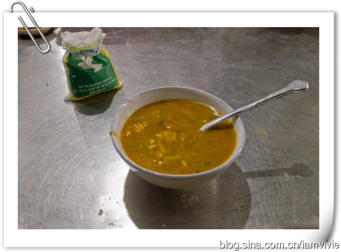 这个是强烈推荐的汤,叫做harira,三迪拉姆一碗,非常好喝,摩洛哥到处都有,有点胡辣汤的感觉,但是是不一样的。