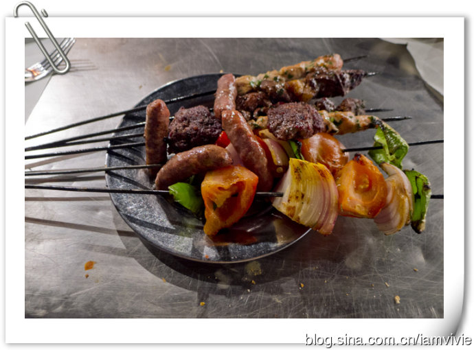 接下来的是烤串,我和Lin一起买了一份混合的,有各种肉香肠还有蔬菜,味道不错~60迪拉姆。