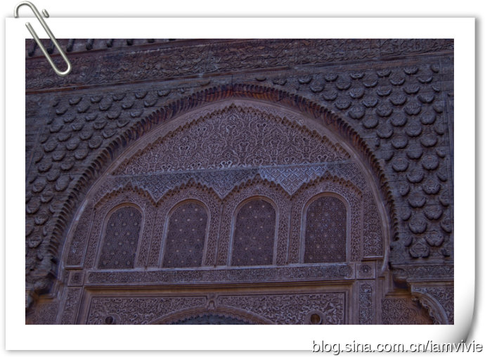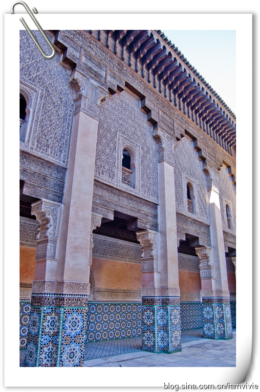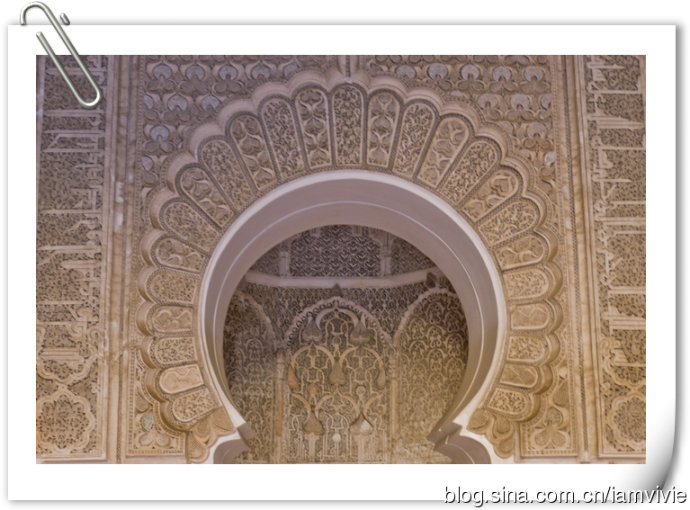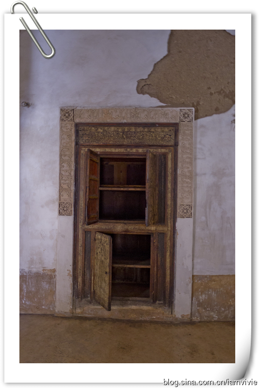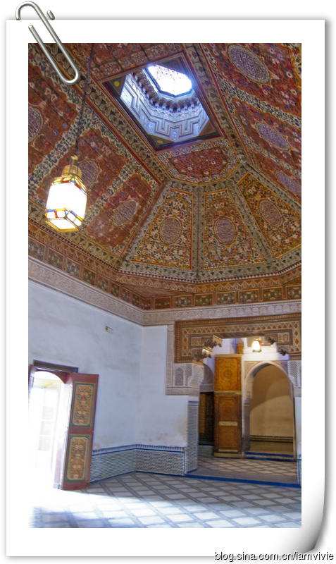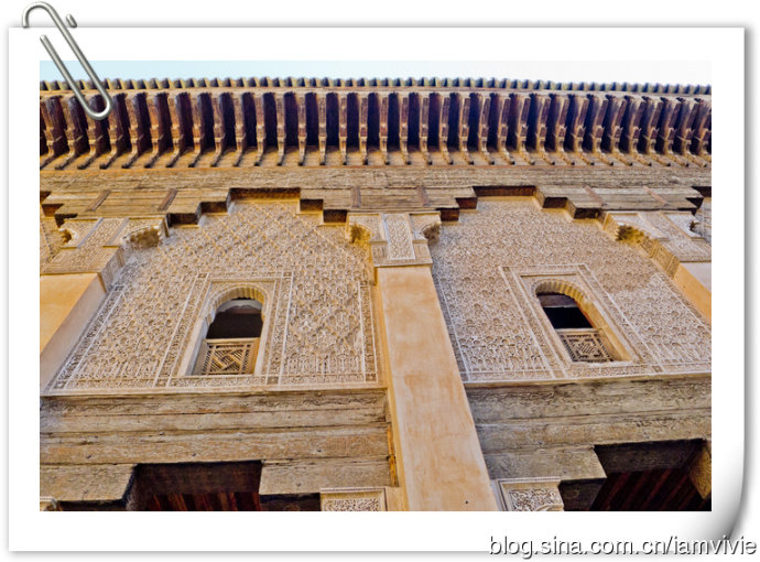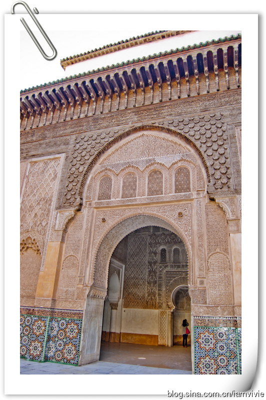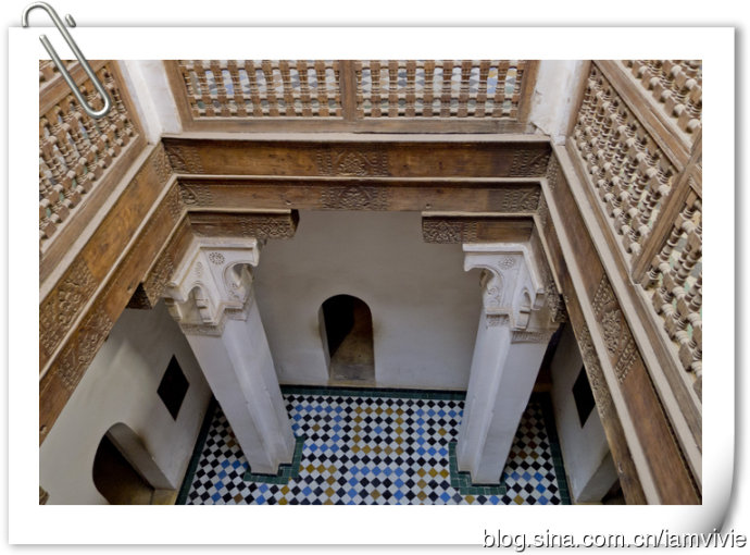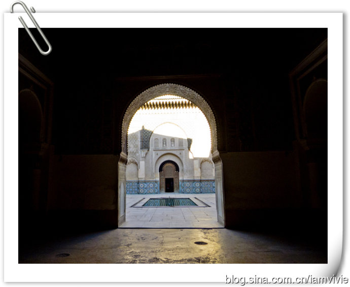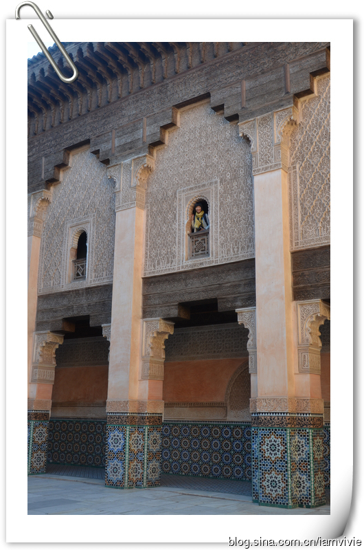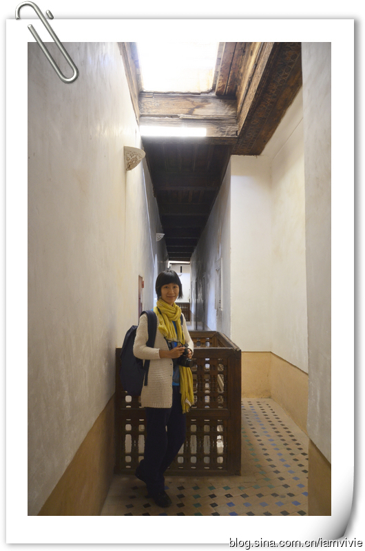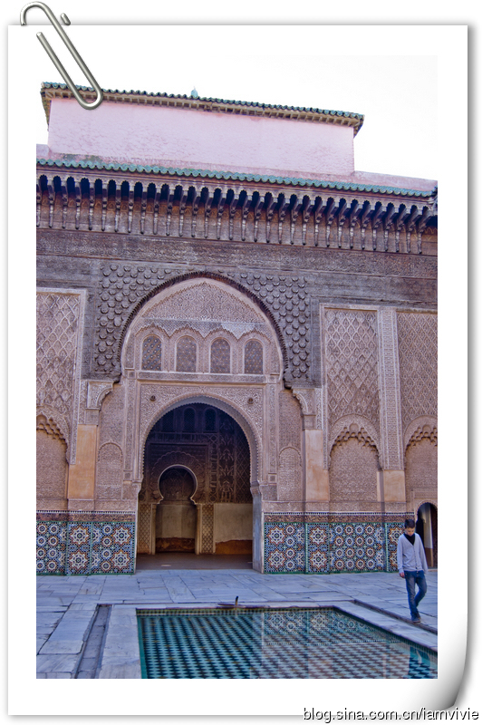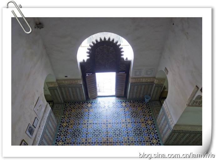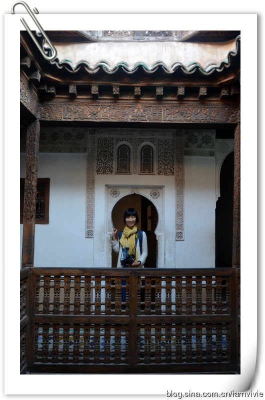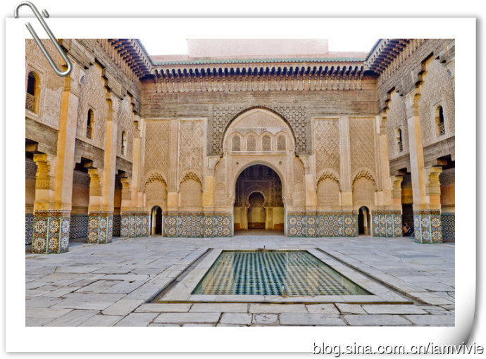 参观费50迪拉姆。这一家还是很有名的,建造于14世纪,以前曾经是北非最大的可兰经学习学校,直到现在也是很有名望神学院的。1960年关闭后,就作为历史遗迹供人们参观。这是我们参观的第一家伊斯兰学校,还是很细致的到处看看,后来在菲斯又看了好几家,格局都很类似,就懒得逛了,审美疲劳中。。。