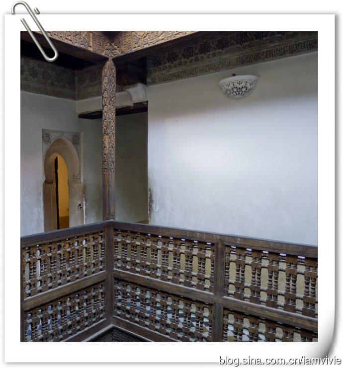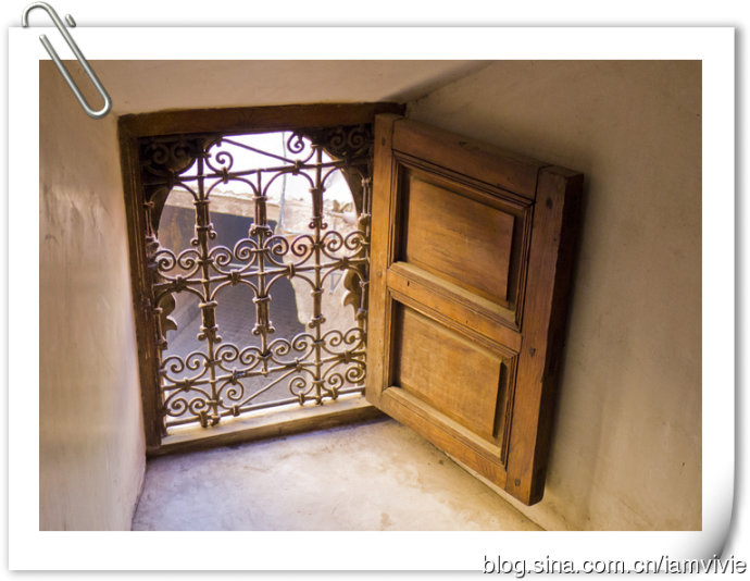 二层都是学生宿舍,这一家学校屋子空间比较小,后来在菲斯看的就宽敞多了。然后每隔几个寝室就有个一个四方形的走廊,上面有的是露天的,有的是封住的,风格差不多,但是细节也有差别。