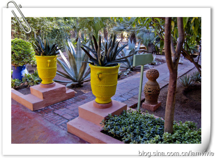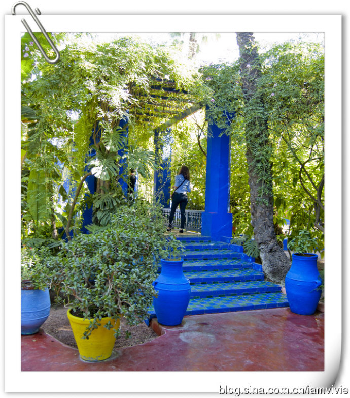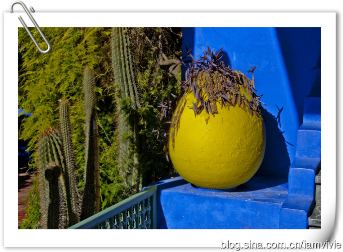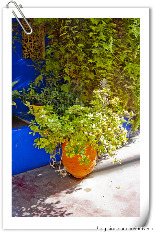 回归正题,这个植物园是由法国画家Jacques Majorelle在上世纪二三十年代法国殖民地时期设计的,最大的特点是采用明亮的蓝色,我个人的大爱啊!1947年这个花园对公众开放,1980年伊夫圣洛朗买下这个花园,2008年他去世后,骨灰就洒在这个花园里。植物园里虽然植物众多,最熟悉的还是仙人掌,棕榈树还有竹子,其他的我也不认得,也没有注解。不过比起大胆明亮的蓝色,我不得不说那些植物都黯然失色。没啥好解释,看图好了。