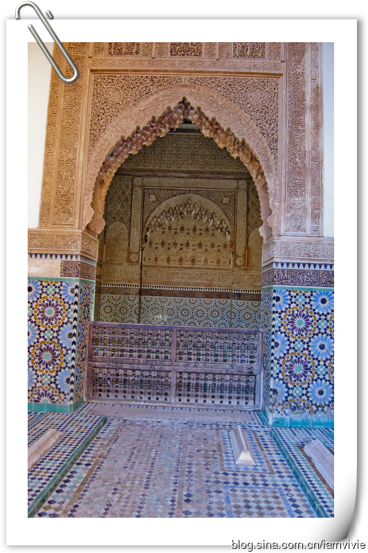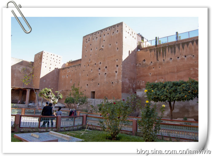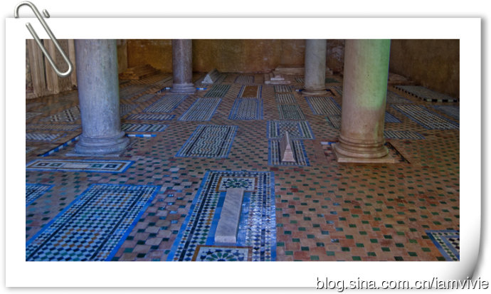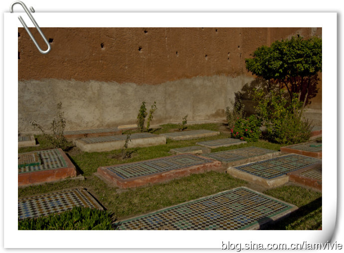 这个墓地10迪拉姆,后来我们参观了宫殿也是门票10迪拉姆以后,我们一致觉得这个墓地像是骗钱一样,啥也没有一眼望到头还要10迪拉姆!这里是1578-1603时的统治者Ahmad al-Mansur和他的家人的墓地,1917年被发现,重新装修过开放。wiki上是这样说的“The tombs have, because of the beauty of their decoration, been a major attraction for visitors of Marrakech.”。我是真心理解不了它的美丽在哪里啊!这样的建筑在摩洛哥不是比比皆是么!完全可忽略它。