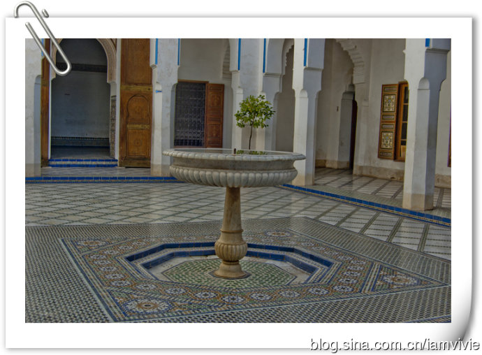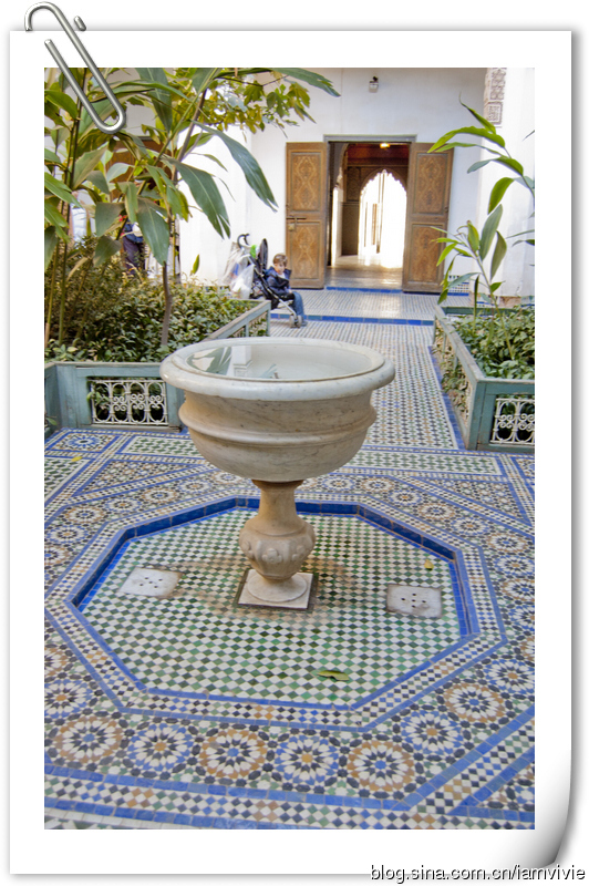 接下来去的是Bahia Palace,这一家是十八世纪末,当时的高官Si Moussa建造来个人用的,本来试图打造成当时最伟大的宫殿的,花了14年时间用摩洛哥最顶级的工匠打造出来,但是由于匆忙的设计和缺乏创见的细节,就没成功,不过我觉得虽然不是最伟大的,但是还是很不错的,值得一看。更牛的是,宫殿里虽然只开放了150个房间供参观,但是还是可以其他供女人居住的房间,这人有四个老婆24个妾室都住在这里。。。