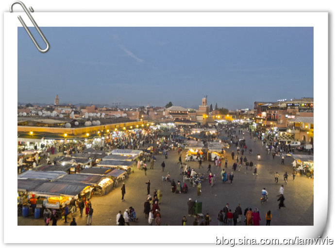 和Lin汇合后,就一起大广场觅食。Djemaa el Fna广场是非洲最繁华的广场!晚上卖吃的都出来了,白天各种耍猴的,斗蛇的,卖艺的好不热闹。就是别轻易拍照,游客被坑钱是常有的事儿,害我们都没有拍到什么杂耍照片。
