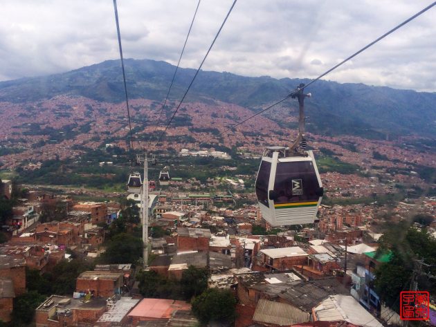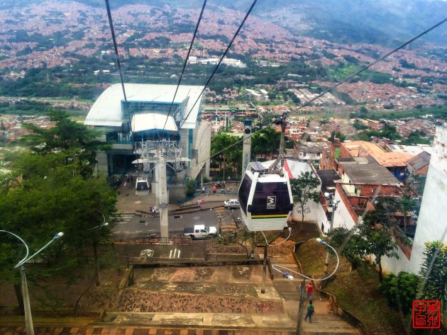 麦德林新修的城市公交系统Metroplus不仅包括公车和地铁,还包括通向山上贫民窟的缆车,在世界上也算是头一份。坐Metrocable的L线缆车,25分钟就能从城里来到山顶。