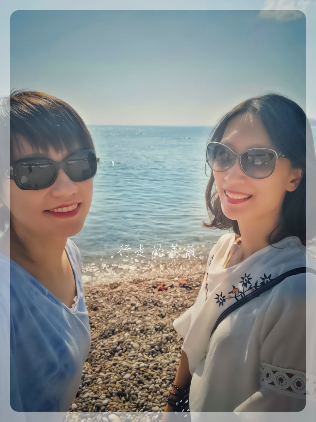 我们下到海边,地中海一惯没什么好的沙滩,都是鹅卵石。我们也没准备下海,在旁边喝个冷饮晒晒太阳,准备发我俩一年一度旅游打卡的合影。细细发挥拼图小能手的本事,很勤快利落的找出我们每年的合影,一下子发了从我们北美第一次重逢到现在,连续九年每年的合影,想想再一年九宫格就不够发啦。