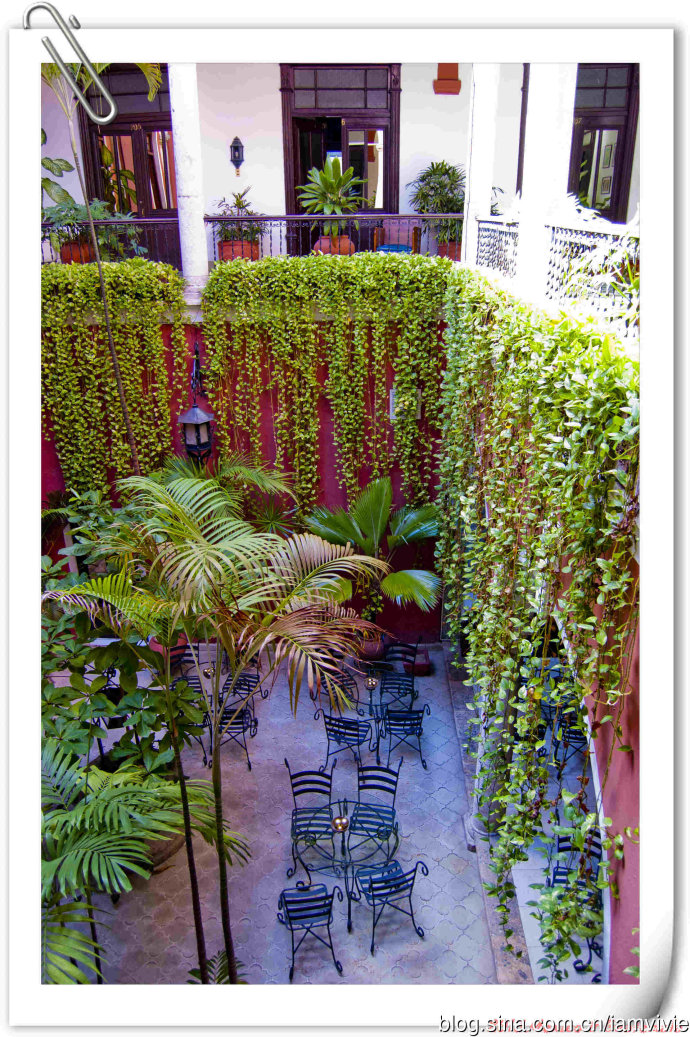 从Villahermosa出发经过一晚约10小时的车程,屁股都要坐烂了,终于到达了Merida梅里达!在Palenque随便订了家旅馆Hotel Reforma,本来价钱还挺合适的,结果到了之后又加了一个什么税,一下子就价格暴涨了哎。看这就是事先没做好research的结果,条件还凑合,我的房间位置比较偏僻,所以还蛮安静的。旅馆格局就像摩洛哥Riad的感觉一样,有点古老的说,浓浓的民族风还不错。