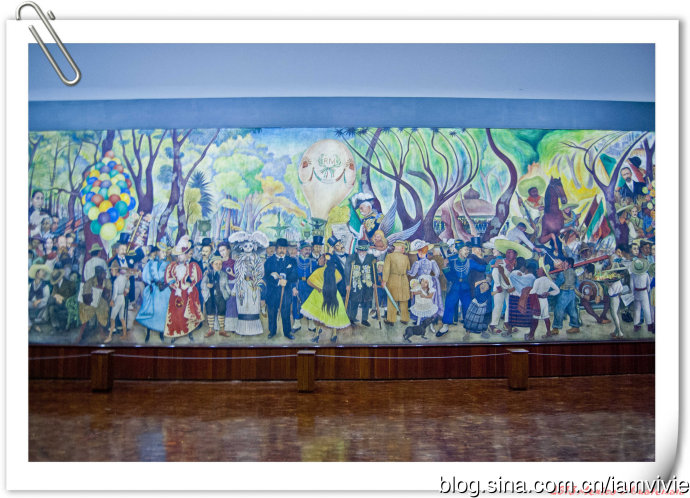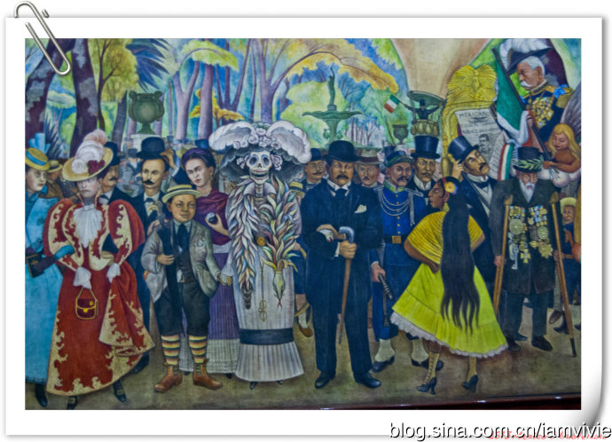 里面最著名的就是这幅非常长的画,一个展厅专门展出它,二楼也有窗口可以俯视,我的大爱啊。名字叫做Sueño de una tarde dominical en la Alameda Central(翻译为Dream of a Sunday Afternoon in the Alameda),每个人都有名字都有介绍,超强的,他把自己还有Frida都画进去了。墨西哥的骷髅文化我好喜欢,Diego和Frida的爱恨纠结真是让人感叹,这样的传奇女子好是敬佩。