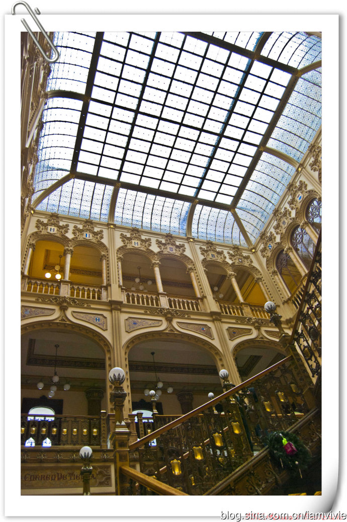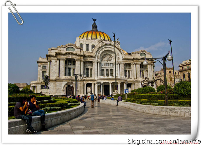 这个是很有名的那个Palacio de Bellas Artes, 这座艺术宫是墨西哥最重要的文化中心,大家叫他洋葱头,哈哈,这是我认为墨西哥城最美的建筑了。它是为墨西哥独立战争100周年而建立的,这座建筑物最出名的是Diego等人的壁画,并举办众多的展览和文艺演出。去的时候没开门,进不去就木有壁画看。这个时候好像雾霾散去了些。