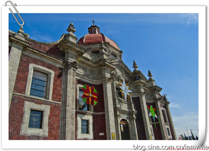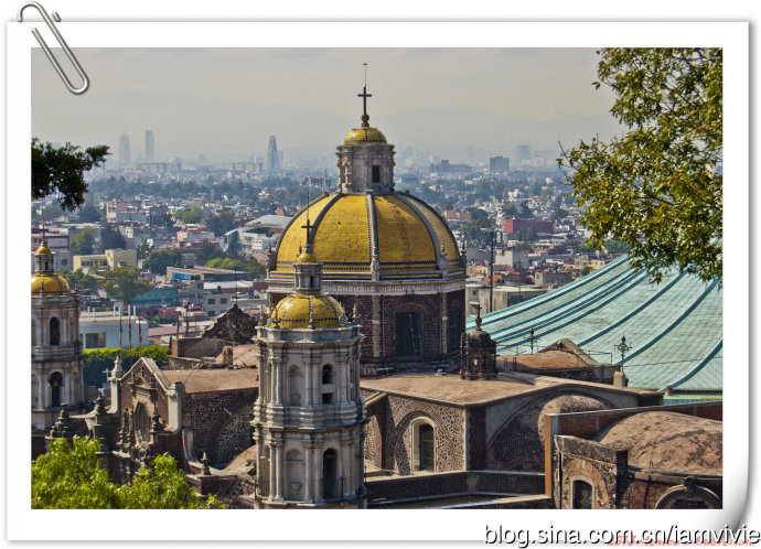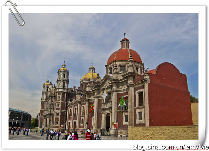这个黄顶的是旧的瓜达卢佩教堂,始建于1531年,16、17世纪一直不断增砖添瓦,直到1709年才结束。因为墨西哥城是靠填湖建成的,加上地下水过度开采,这座教堂也一直在不断下陷,确实有点感觉歪歪的。