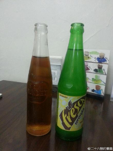这两个饮料有点像掺了水的可怜和雪碧耶,哈哈!
