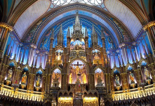 教堂参观费$6,弥撒每天下午五点和周日早上,期间免费。千万不要小看这座教堂,以为北美没有漂亮的天主教堂,这个真的是进去第一眼就会被吸引,超级的富丽堂皇,金灿灿灿亮闪闪的简直要闪瞎了眼,蓝色天花板的金色星星更是美轮美奂,木雕和彩绘玻璃的也值得仔细观摩。还有一个推荐是教堂的灯光秀,现在上映的是Aura,需要单独买票,就可以享受教堂里的光影的盛宴,不得不赞叹法裔加拿大人完全继承了法国人的艺术创造力,虽然价格小贵,但非常精彩。演出时间随季节不同,请参照官网https://www.aurabasiliquemontreal.com/en/schedule/